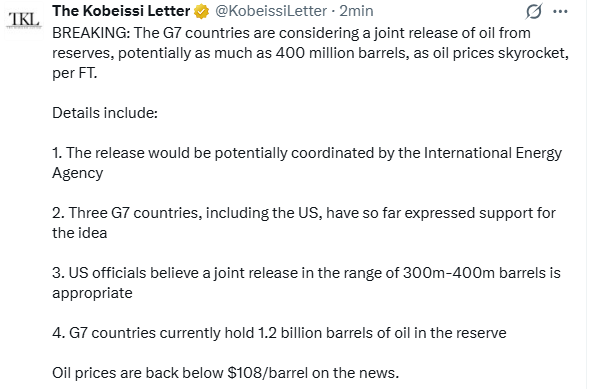 >>61956358Its probably just countries starting to deploy there strategic reserves it just depends on how long the conflict goes on for