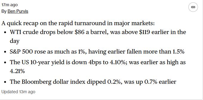 So is stock market just people following trumps tweets? He says war is over and oil dumps to pre war prices and sp500 goes up.