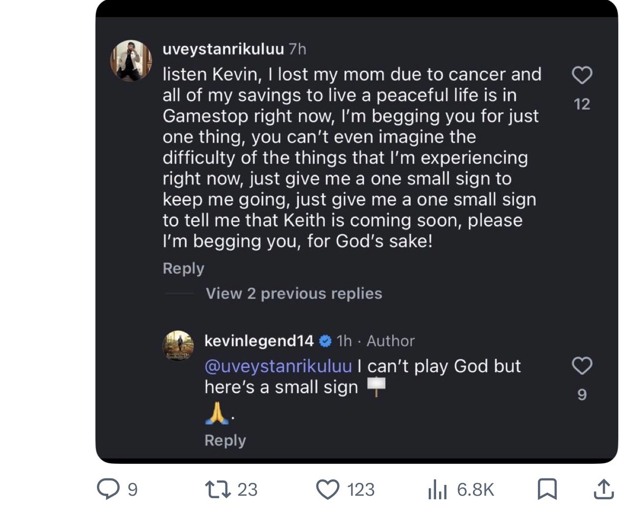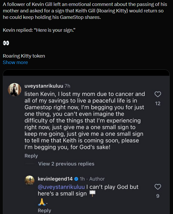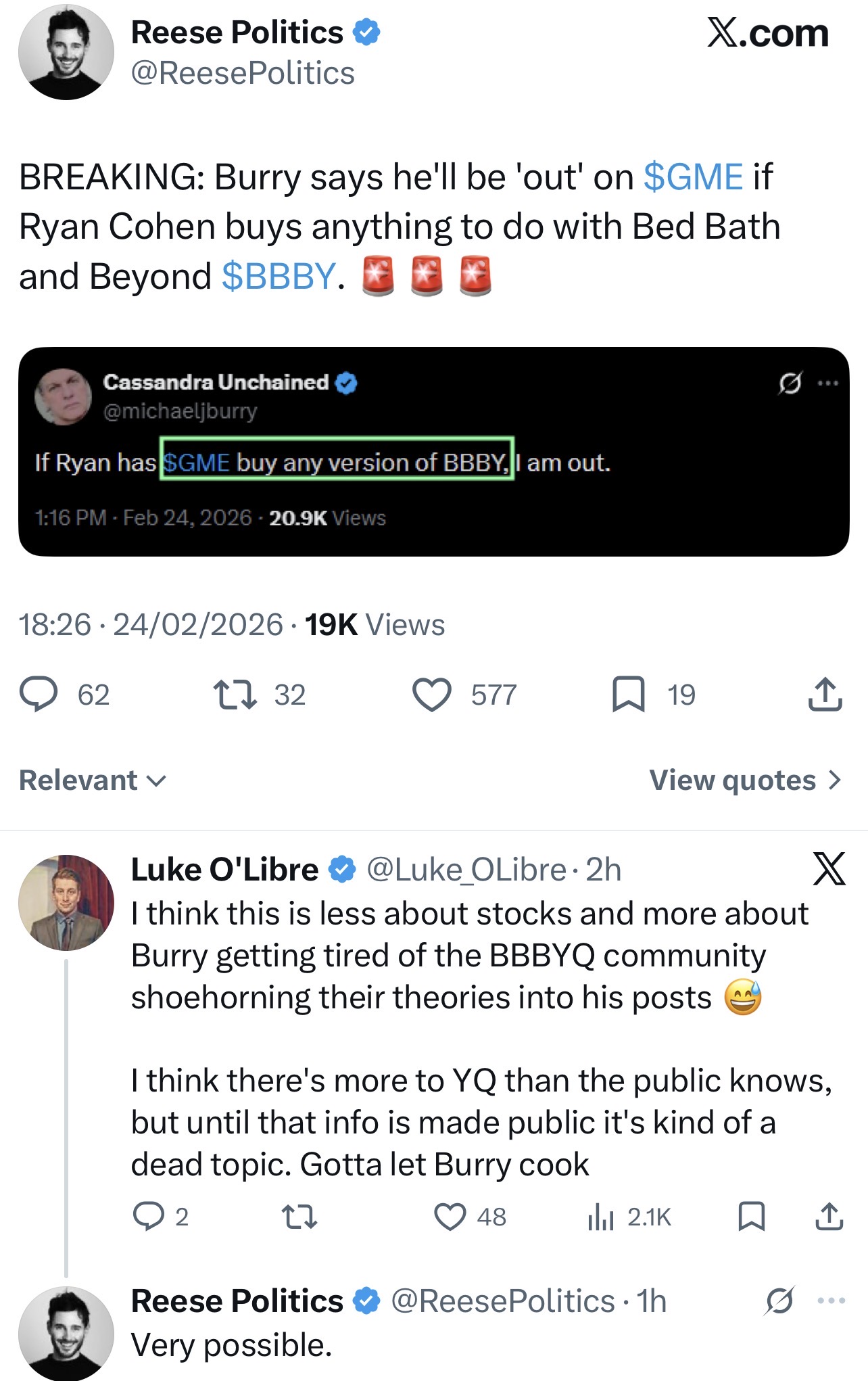 https://x.com/BarkingPuppy8/status/2031452936350339150DFV's brother held BBBY (old name pre OverStock), and he states he trimmed a portion of his position in aug 2022, when RC sold.The CEO of GameStop offered 400m to buy the company and then became a chapter 11 creditor to said company.