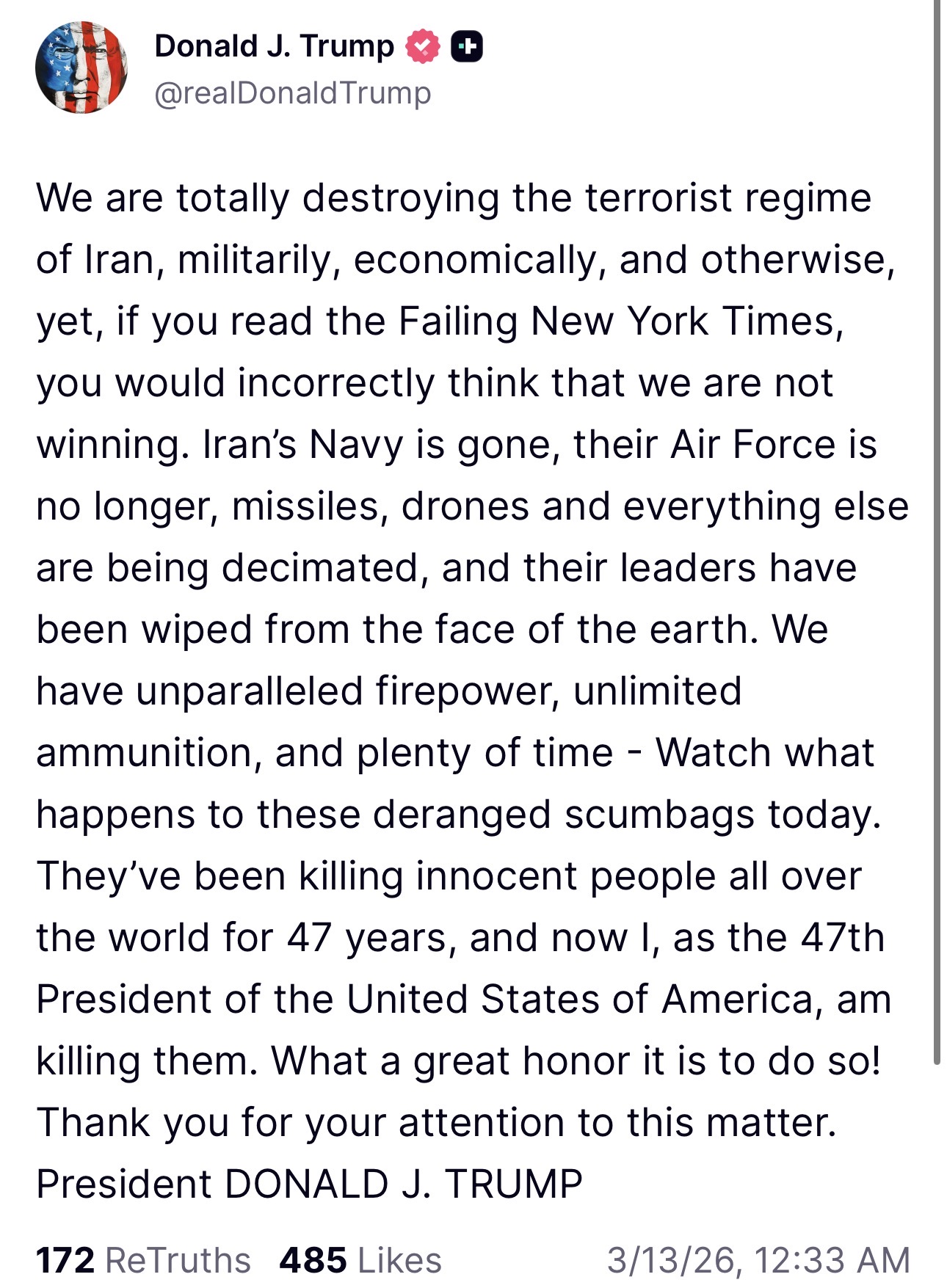 >>61977513>They've been killing people for 47 years and now I, as the 47th president, am killing themim gonna miss this niggers tweets