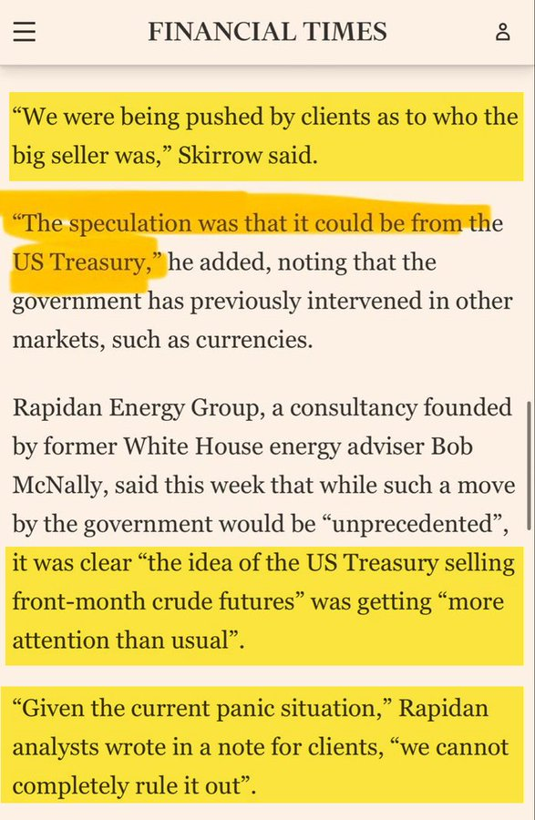 the us treasury is naked shorting oil futures right now to artificially slow down and depress the oil prices. imagine a GME style international buying frenzy on oil futures to push up the price and force the treasury to pay up after naked shorting billions of dollars worth of oil. if we make this shit go viral we can have our revenge. this is the real MOASS. the final boss
