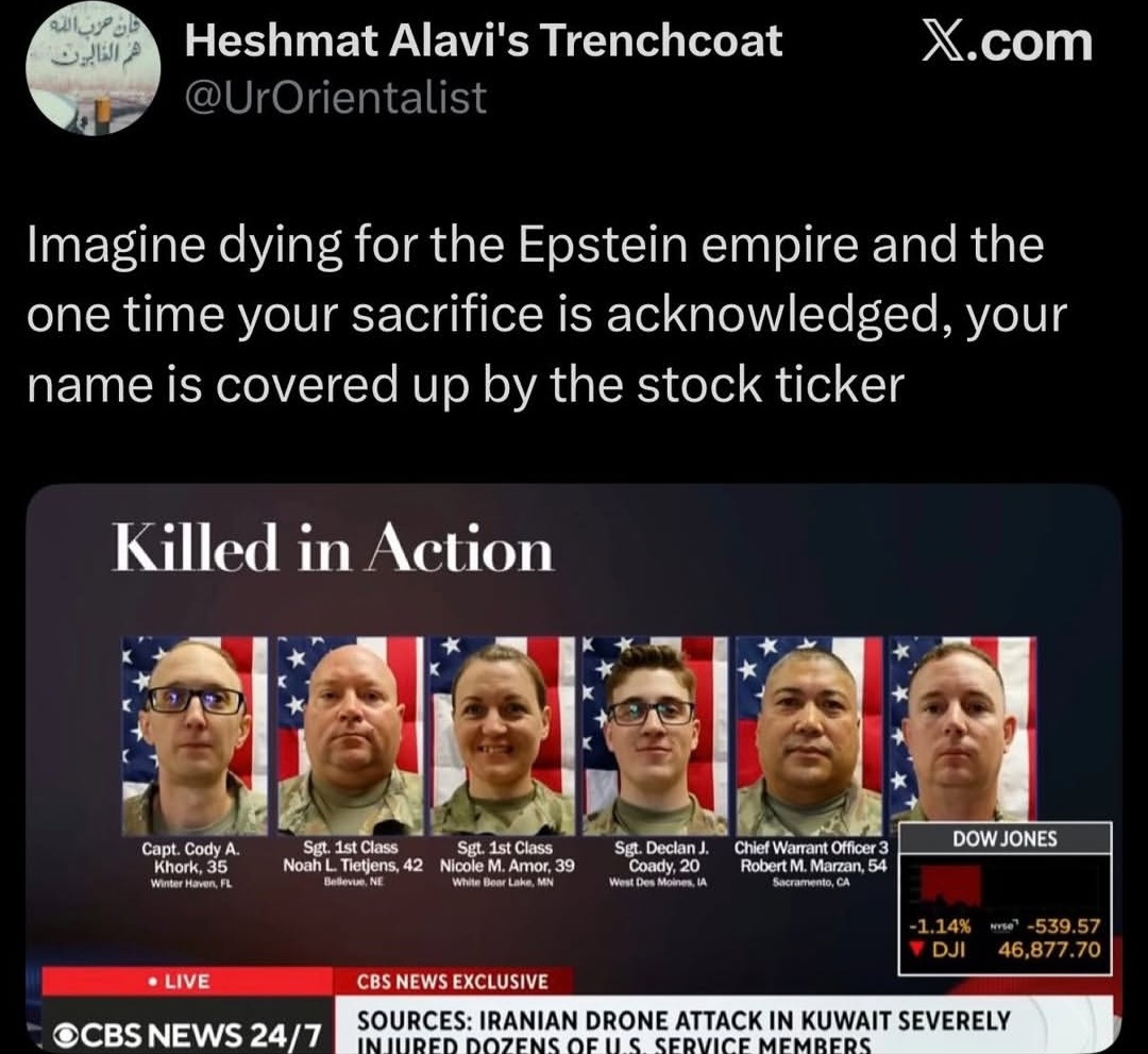 >>61981420Jokes asideThere was one anon one or two weeks ago who was beating his chest when he kept asking >but in the last 24 months when did american soldiers die in iraq?Yea nigga now its here What now