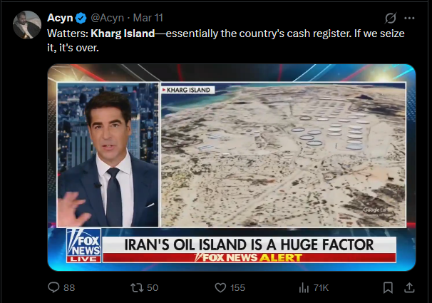 Dude he 100% saw someone on fox news say trump should take kharg island and then told his military people to make it happen