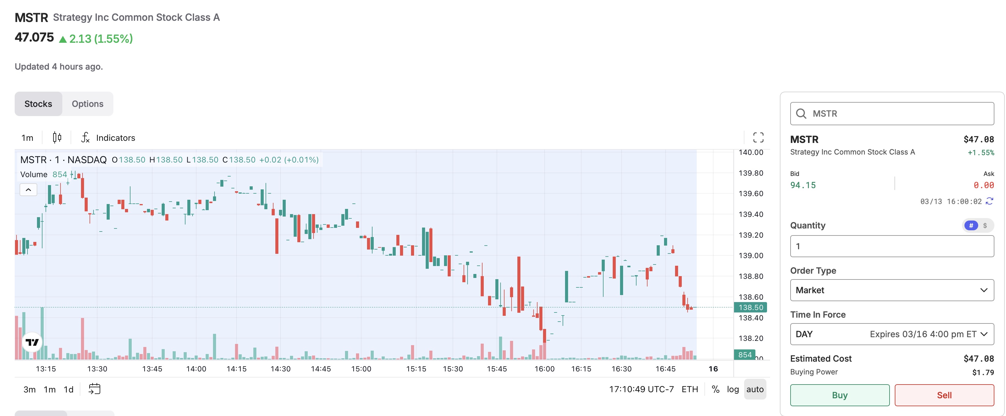 Alpaca is listing MSTR for $47.075? Lol