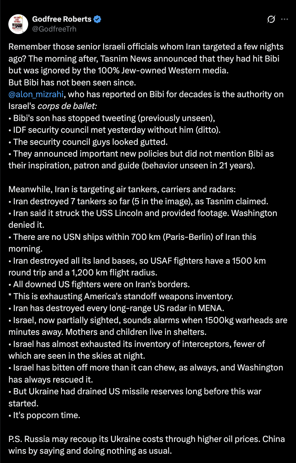 >BIBI! HOW COULD IRAN STRIKE YOUR SON STAYING AT THE 3RD FLOOR OF THE AL MASQA HOTEL IN HAJIB, ARABSTAN ON MARCH 15TH 2026? THATS ANTISEMITIC!