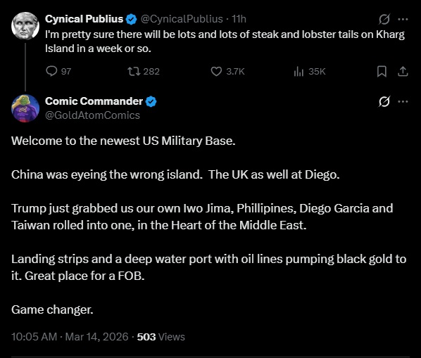 >>61984737https://www.indiatoday.in/world/story/will-us-deploy-boots-on-ground-in-irans-kharg-island-what-israel-envoy-said-2881995-2026-03-14