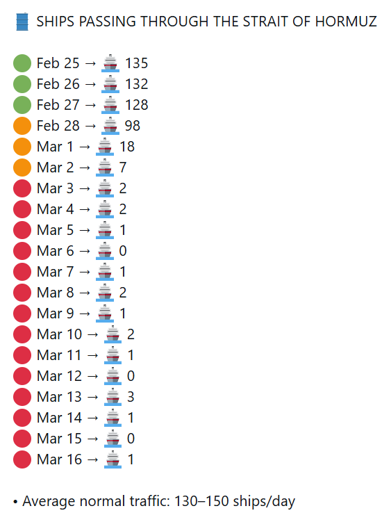 Iran allows tankers from non-U.S./Israel-aligned countries (e.g., India, China-linked). So there are ships going through. Certainly more than 1 per day.