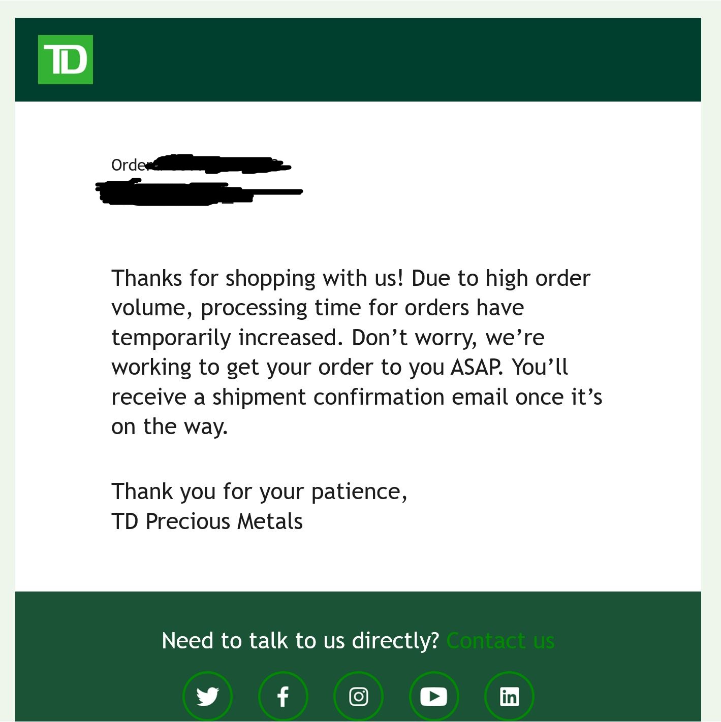 FUCKIN HELL, writing an email to TD for a refund and order cancel after work tonight. They delayed my 5-15 business days order from January to up to 30 business days (got it a week or so ago) And I just got a fuckin email saying my February 20th order that was up to 30, and is now up to 45+ business days. Wildly unacceptable and will be demanding a refund (watch these faggots try to say no) proper second time they’ve yanked the delivery date up by 15+ business days, which ends up being way more. Get absolutely fucked. Anyone else get an email like this lately?