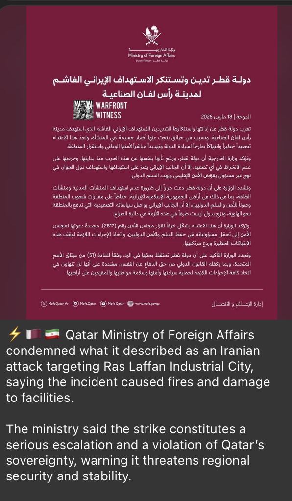 Some oil refinery in Riyadh from earlierhttps://i.4cdn.org/wsg/1773862100007423.mp4One was already hit before a second, they aren't giving anything away in news to confirm the hits and what it was though - they said they were all intercepted initially lolThis is on top of Qatar gas fields who have admitted were hit and damaged