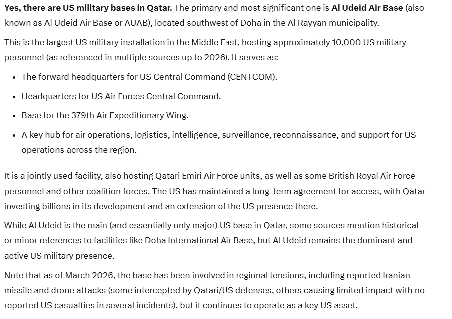 >>62002952>neutral countriesWhy do people keep saying this? CENTCOM, which is running the war, is LITERALLY HEADQUARTERED in Qatar. You can't host a foreign military, aid their logistics and integrate your radar systems with theirs, then claim you're not involved when that foreign military attacks your neighbor using the capabilities you gave them. The same goes for the rest of the Arab countries except for maybe Oman.