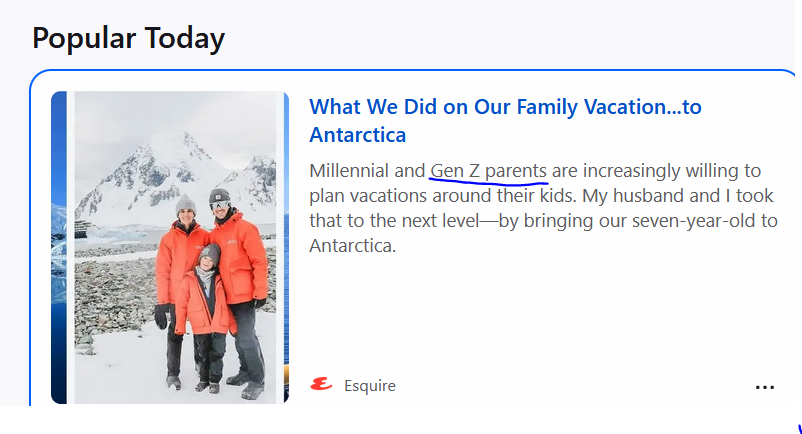 I know the oldest genzers are like 28 or something, but something really rubs me the wrong way about this>some roastie with a 2yo>flies to antarctica>"increasingly"Like these are rich people, the absolute utter minority. No two ways about it. Why does the news media fucking lie so much.