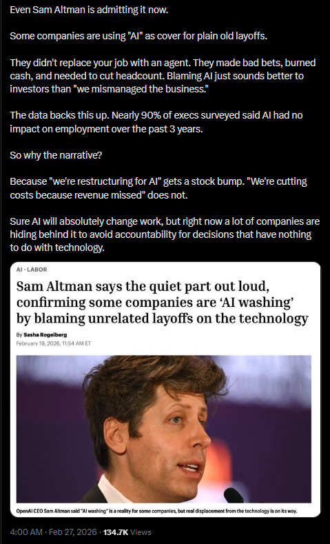 then why job creation is down? I thought it was because AI...unless it isnt and used AI as scapegoat