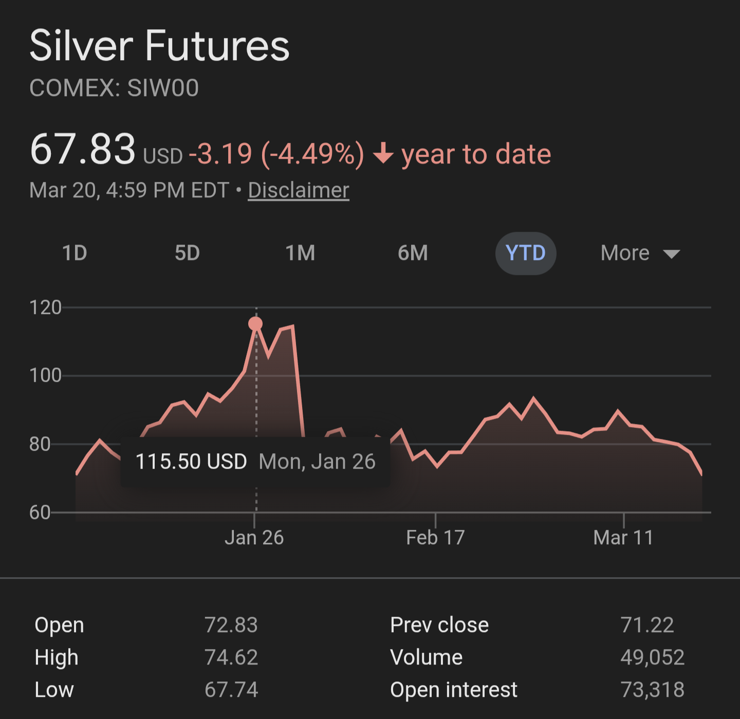 >>62013257Lol no. It's still at 85/oz if you actually want to buy it. The jewish casino says one price and the real world says another.