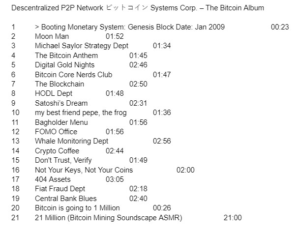 I made an album about Bitcoin culture.The first conceptual Bitcoin music album ever created.I’ve compressed 17 years of revolution into 21 sound blocks.APRIL 3rd 2026.Descentralized P2P Network ビットコイン Systems Corp.https://linktr.ee/protowaves