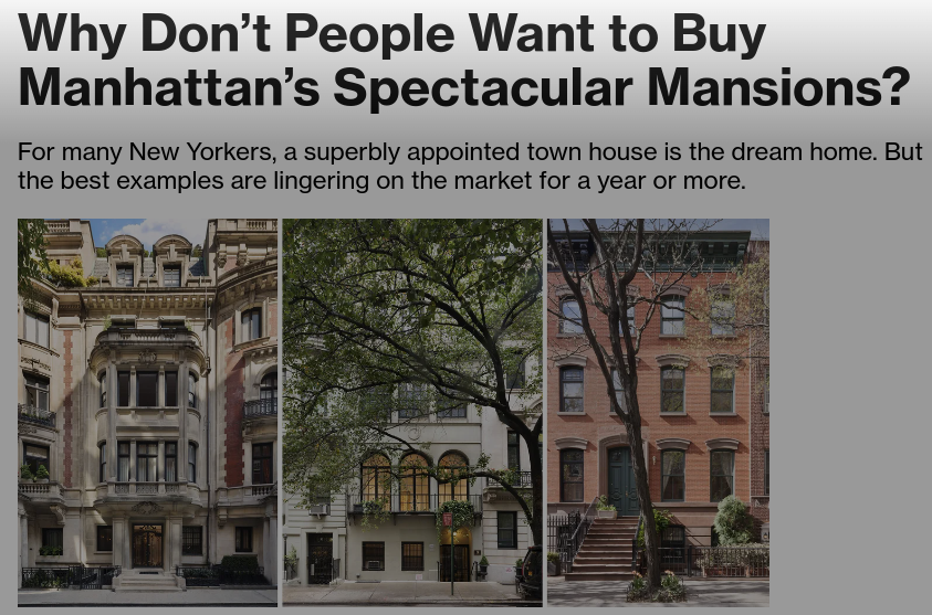 Nobody wants to buy NYC mansions or townhomes anymore. >at the $15 million and up price point the preference is doorman style apartment buildings, especially if this is a residence and not an investment Why?