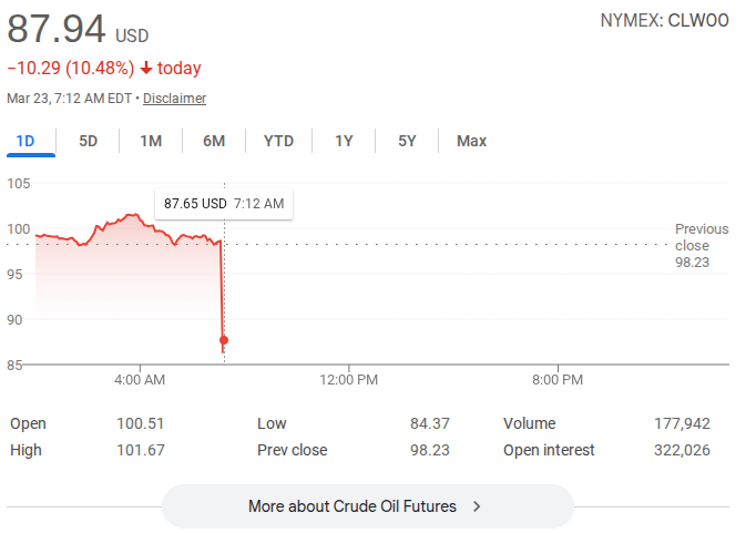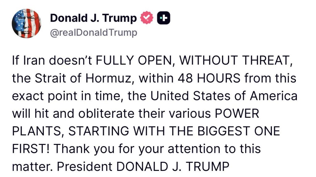 Oil is at $98This is the cheapest its going to get. If you're thinking of going long on oil, this is your signal. Once we liberate the Iranian power plants, every powerplant, refinery, and desalination plant is going to get blown to hell. World oil supply will be reduced for the next decade at least.This is your only warning.https://truthsocial.com/@realDonaldTrump/posts/116269822349947644