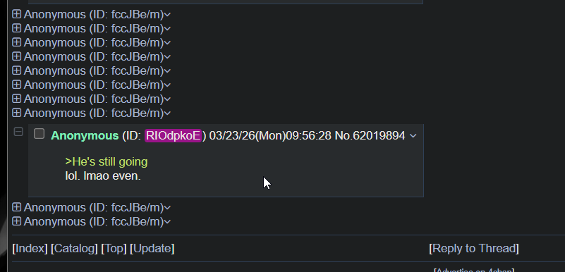 >>62023776Again, I'm posting in multiple threads on multiple boards and multiple websites talking to several peopleYou just have me