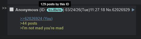>>62026924>44 posts>I'm not mad you're mad