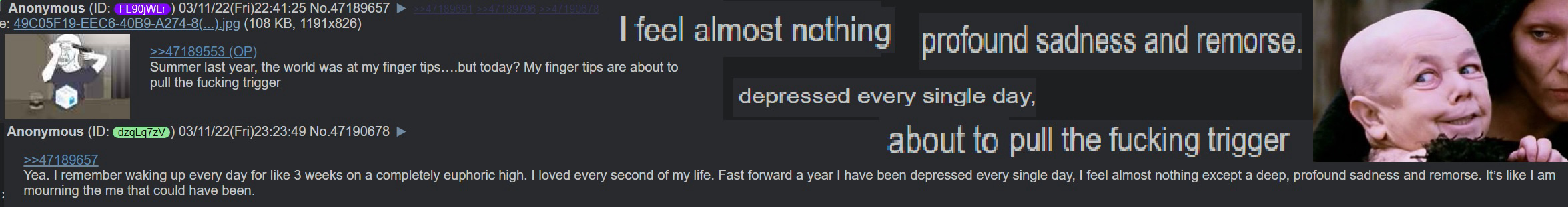 remember when linkies had hope. now all they have is PAIN. lmao and don't forget the misery. dabble on a little humiliation as well. and last but not least: incel rage hahahahhahaah