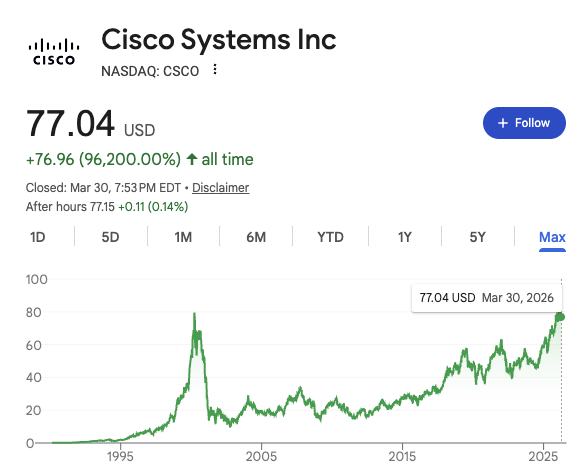 >>62054560cisco is a good comparison, except it's like 2005 instead of 1996.just 20 more years until we get back to all time high!