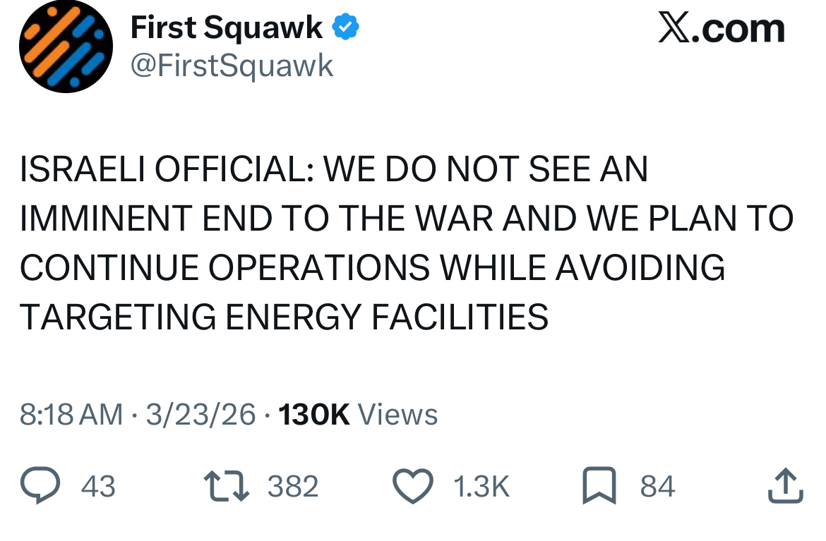 >Iranian leaders died day one>IIRGC had a hissyfit and launched everything that they had>Now they're out of ammo and want to make a deal but have to act tough or be overthrown internallyEasiest TACO trade of our lives, see you all at 8,000. Bears get the rope.