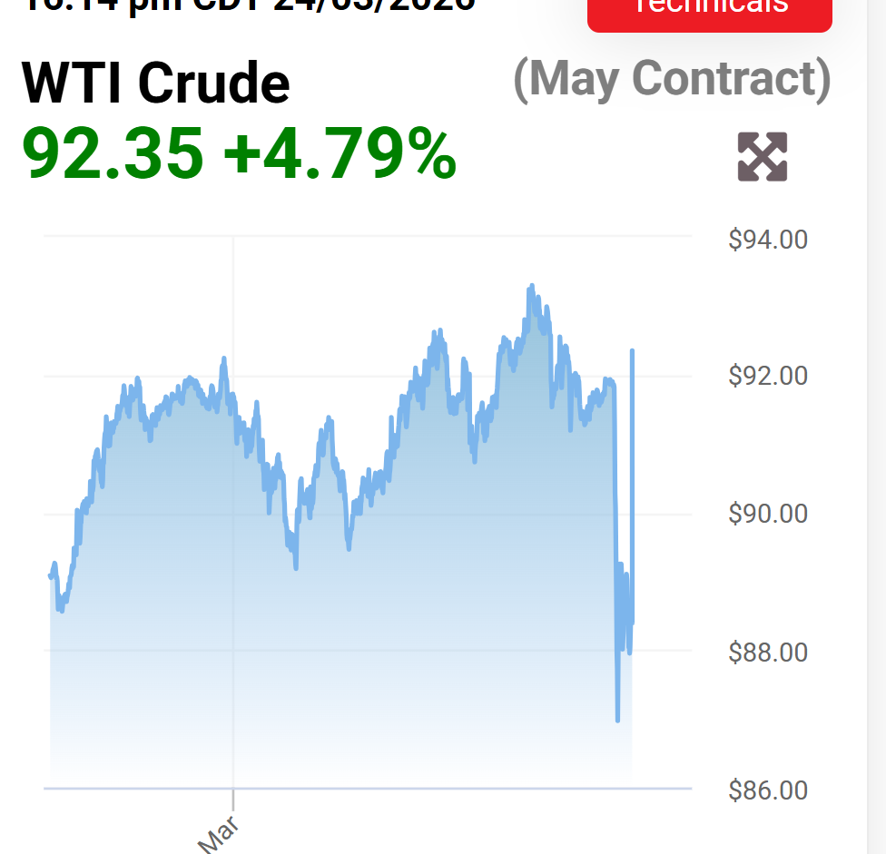 >>62025778>#1 topicI think people are more worried abou the price at the gas pump, as opposed to the underlying barrel price on the market. In theory the price of all oil should continue to go up with each day this continues but the market is in denial aobut the situation and sooner or later the reality is going ot hit them. Murban's current price is just the canary in the coal mine for Brent and eventually WTI when we run out in a few weeks after the strategic reserve is depleted by then.