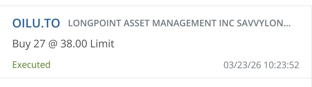 I'm now a holder of a long position on oil. I've set a trailing stop and I'm just going to let it play out.
