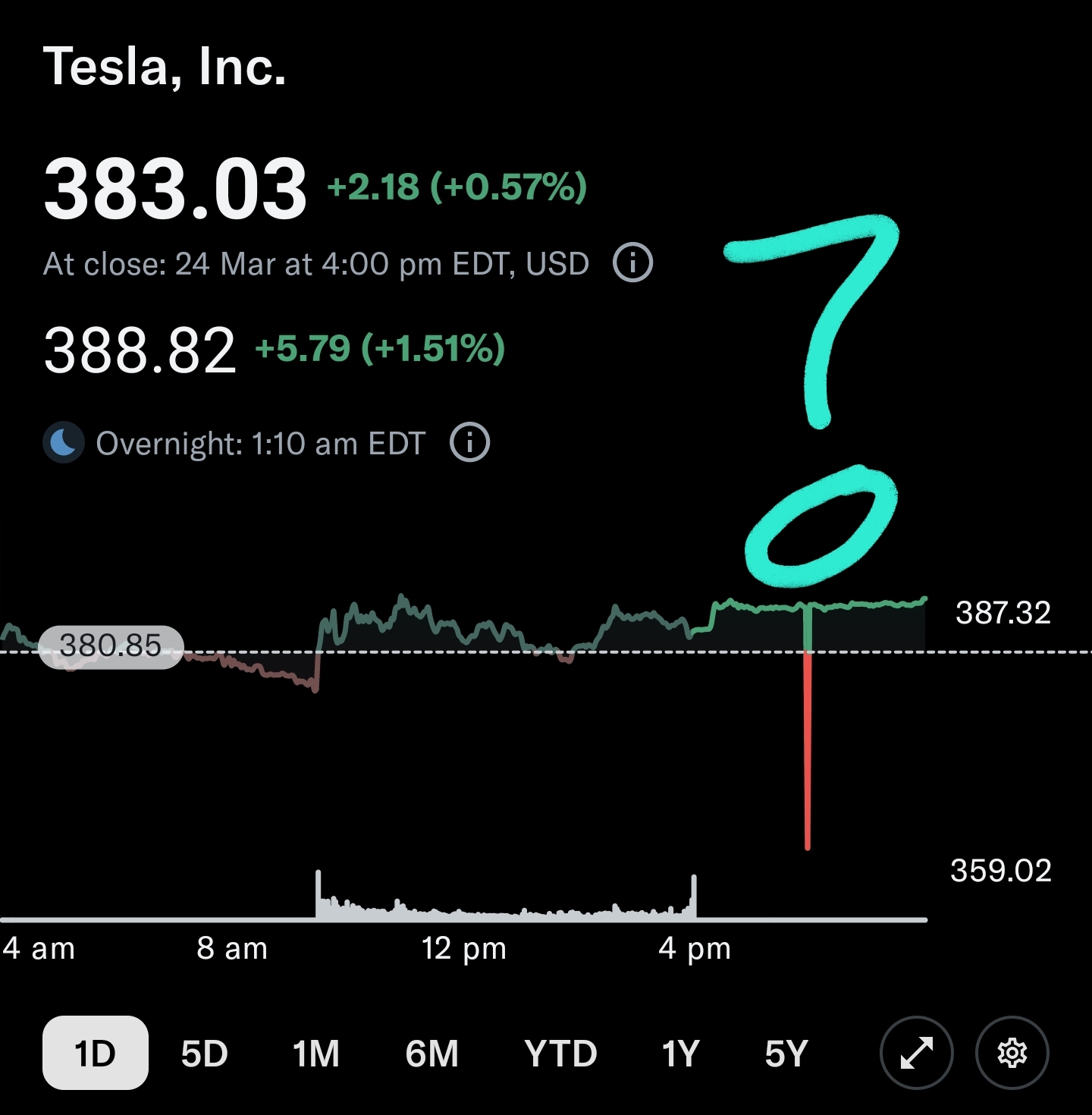 Lame I might have totally missed out on the Tesla bounce. Somehow out of all this bullshit I was supposed to just "man up". Might still try profiting from Earnings run up though if it opens above 400 tomorrow fuck this sigh.