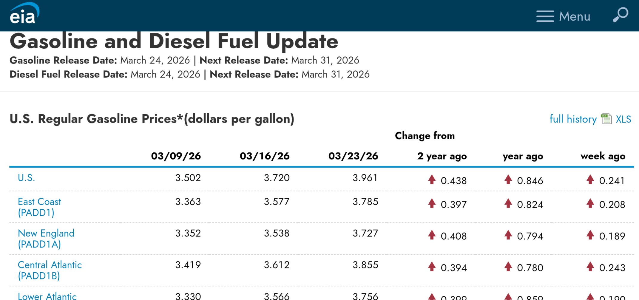 Gasoline is already at $3.96 per gal I'll let you do the math.
