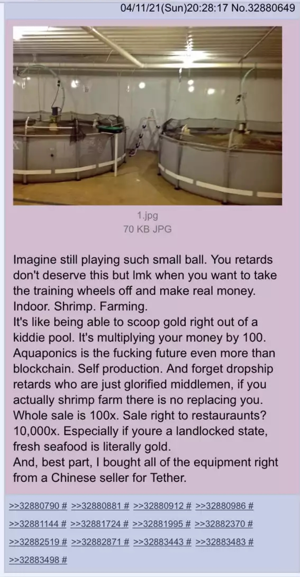 >>62033326>ndoor shrimp farming isn't a meme?Never was.t. shrimp farming billionaire