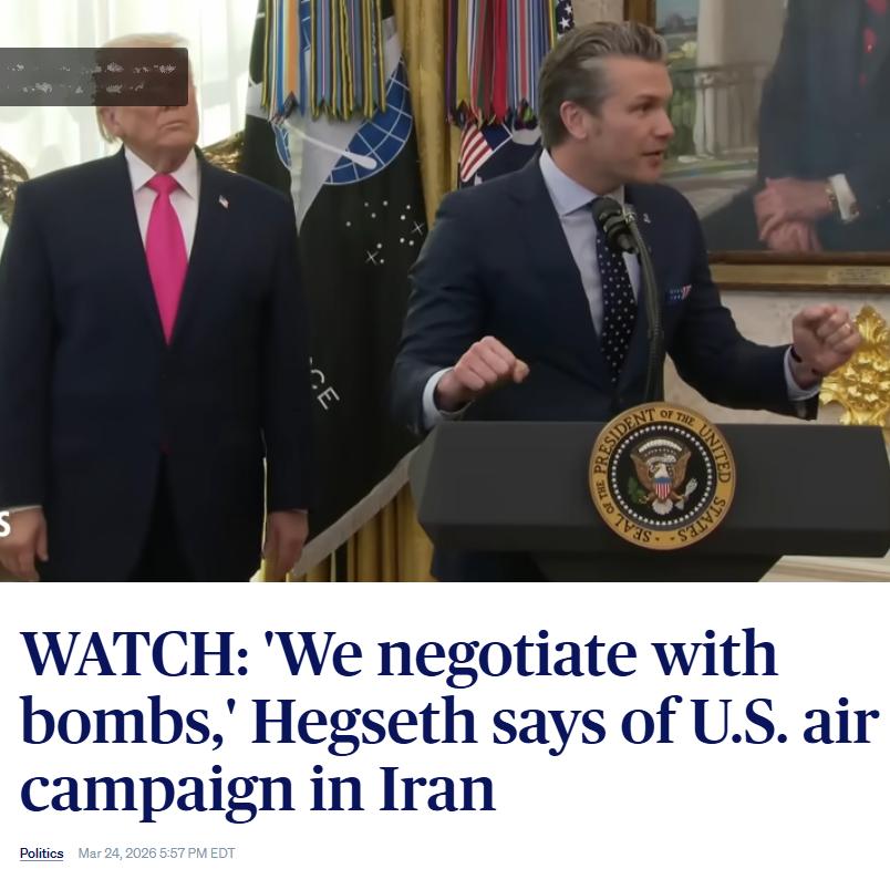 >>62036370That means the bombing is going well>HEGSETH: WE NEGOTIATE WITH BOMBS