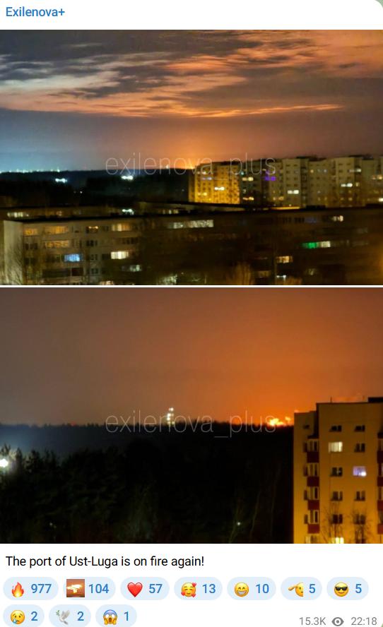 >>62037181Today's sanctions already arrived, fireballs sighted in Ust-Luga port on the Baltic, 40 min ago.