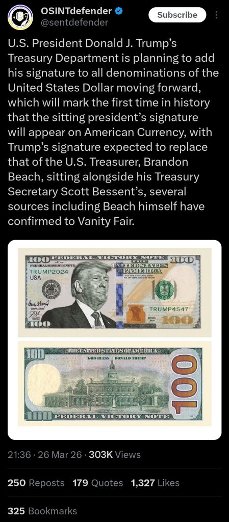 seems like el trumpo is being very realistic about the odds of opening hormuz using military forcehttps://x.com/sentdefender/status/2037214519592685895>Let's say we do a great job. We say we got 99%. 1% is unacceptable, because 1% is a missile going into the hull of a ship that cost a billion dollars, right? So 1% is not... If we do a 99% decimation, that's no good. Not really sure what it means in terms of what will happen, but it's a good sign he's being realisticso his plan now is a peace dealhmm. not good!