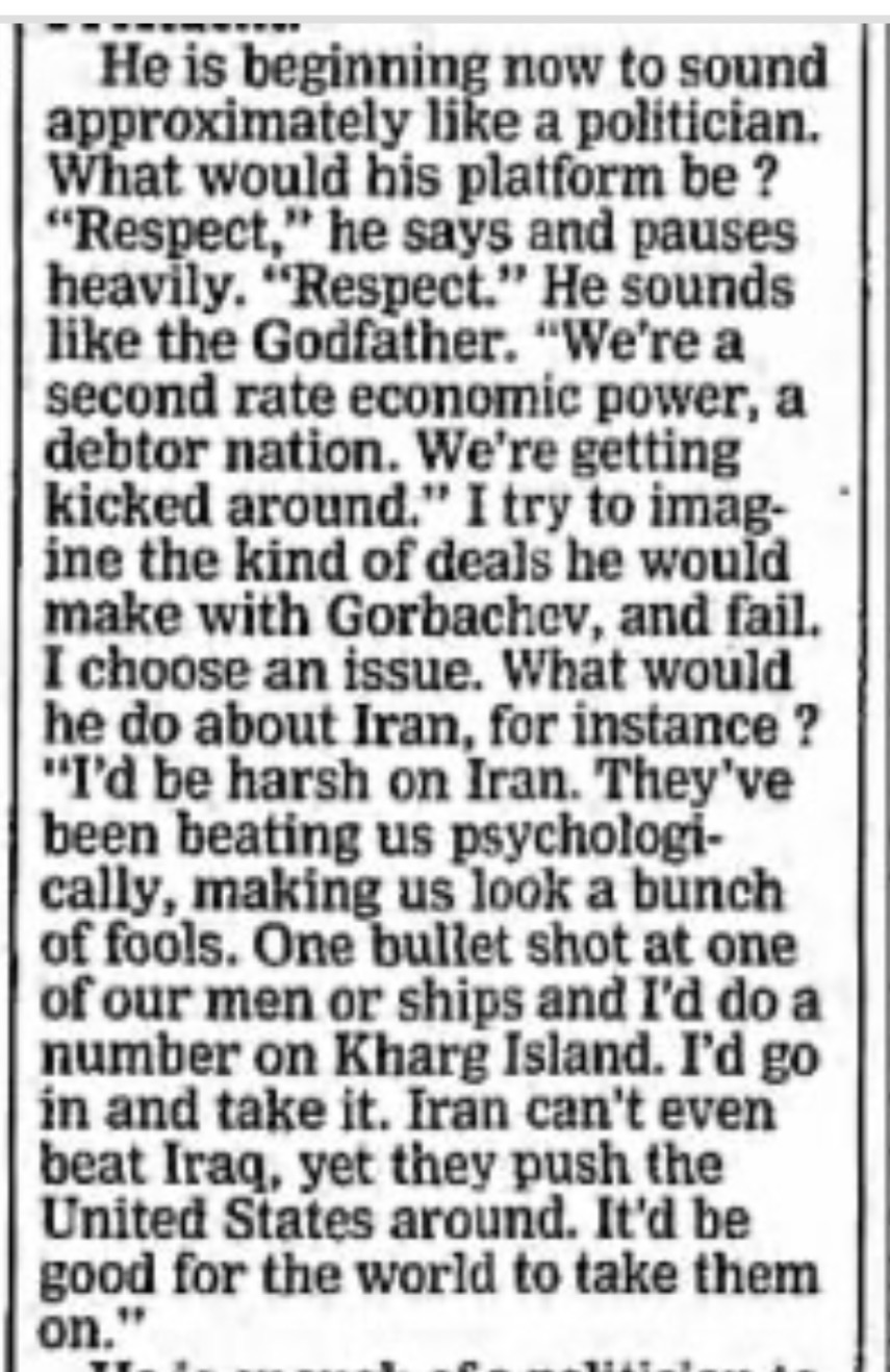 >>62038653No, he's absolutely right. At least back then there was technically more reason with 9/11, if we assume it to be done by arabs/al-qaeda. But then what has Iraq to do with that. And where are those WMD