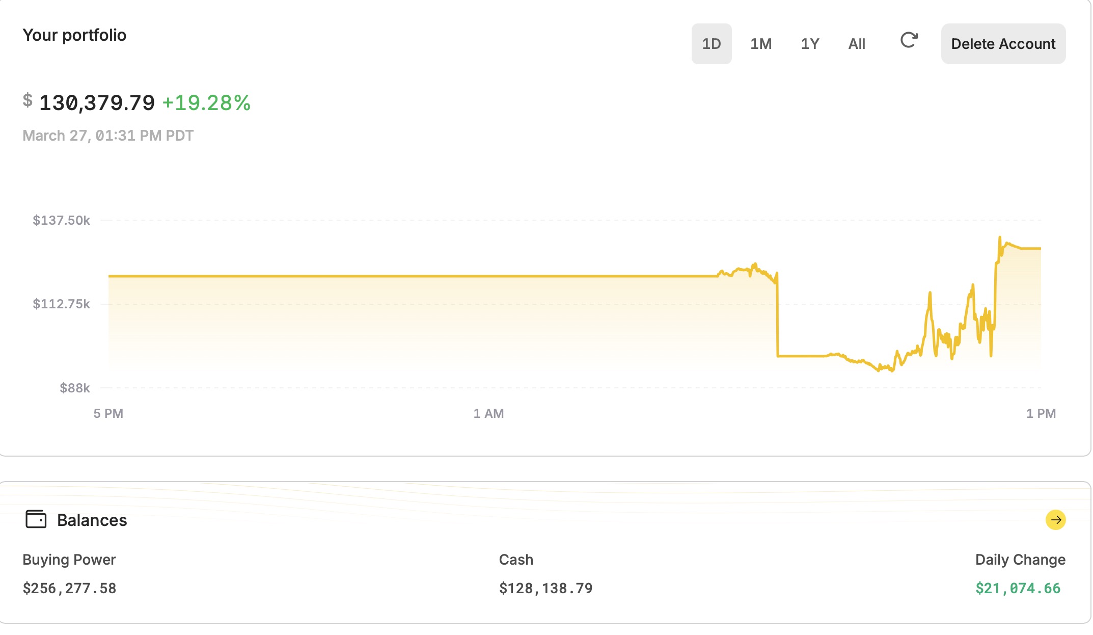 this is how my robot did today (paper trading). I was debugging throughout hence the cliffs