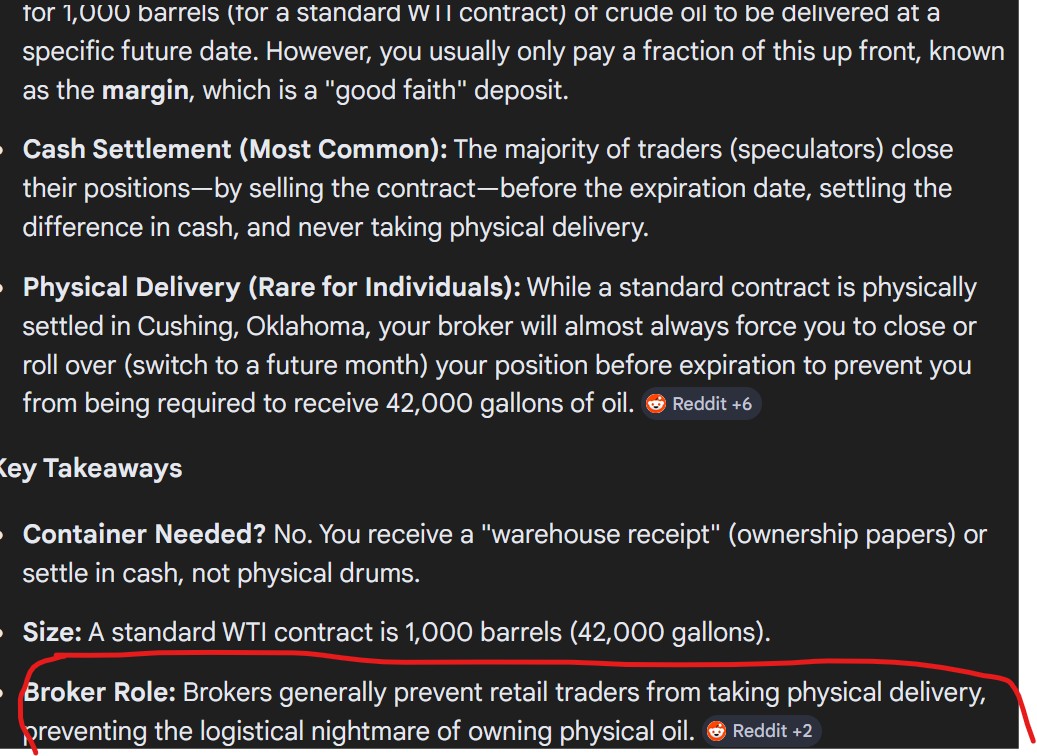 >>62042510when I buy an oil futures contract does that include the cost of the barrel? or do I have to provide my own container?