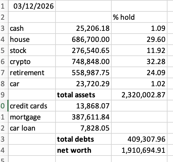 >>62046068I was in your shoes when I was 29 and was able to retire last year at age 36 (actually could've done it a few years earlier). While working I moved 80%+ of my disposable income into BTC, ETH, and megacap tech stocks.>picrelated