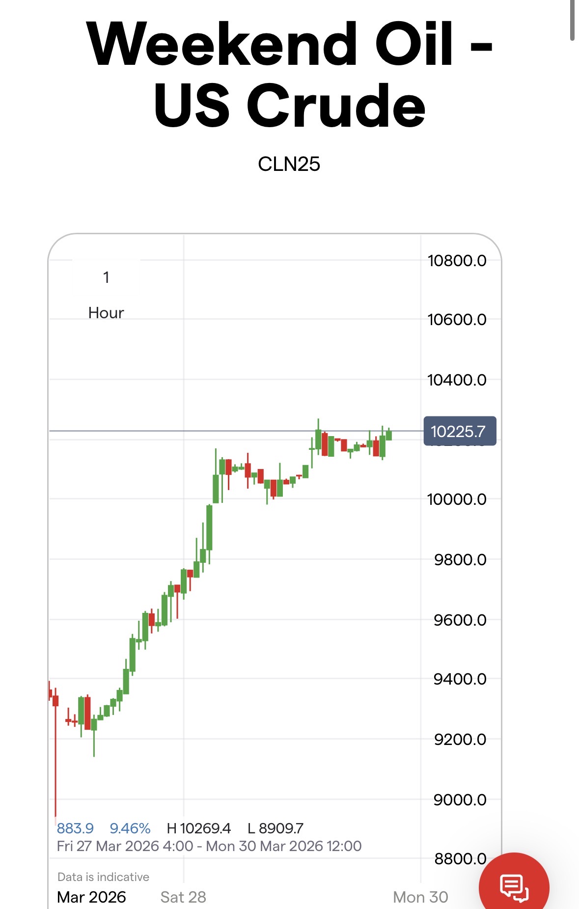 weekend wti is trading at 102
