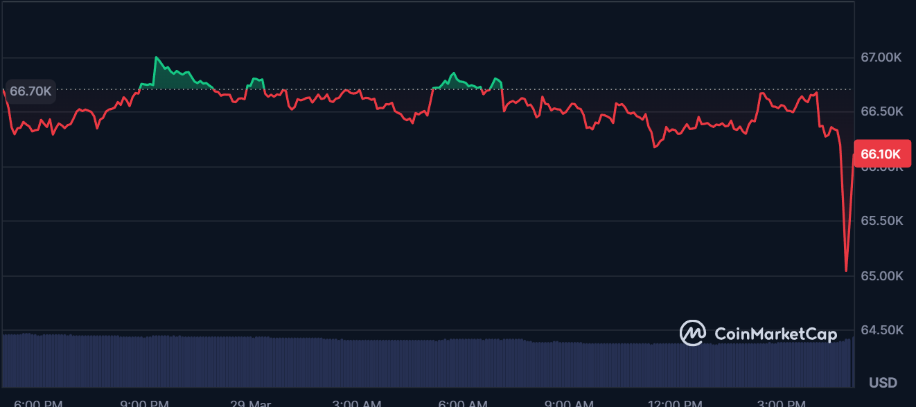 bitcoin spiking back up to 66 from that drop to 65kinda lame