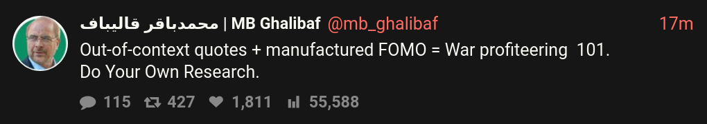 Crazy how you can see the algo spike from "CEASEFIRE" then as they move on reading the post it goes wobbly directly after