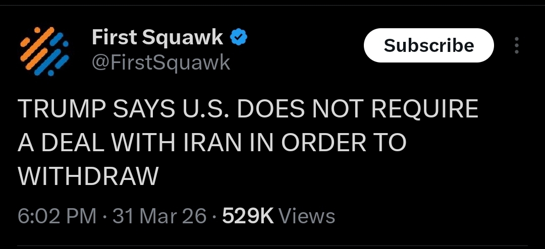 I think he's going to simultaneously declare victory and that the war is over while also authorizing ground troops in the same breathI can't imagine Trump doing a dedicated press conference with major networks all playing it just to say we're leaving, it's obviously going to be viewed as an embarrassing failure for him and he does not want those optics magnified. Escalation of the war, he is fine with, he thinks it makes him look powerful