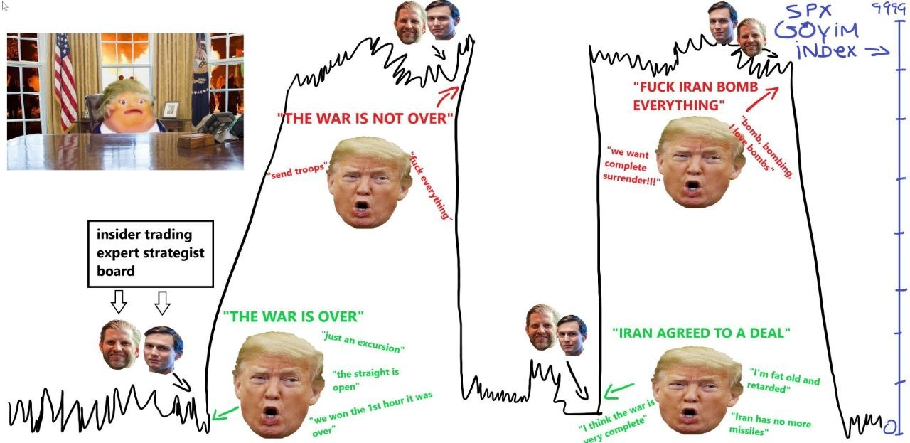 I'll save you the trouble btw>negotiations (lie)>more bombing>2 more weeks>we won>NATO BAD>they have nothing etc...>something about his gay ballroom for 30 minutes