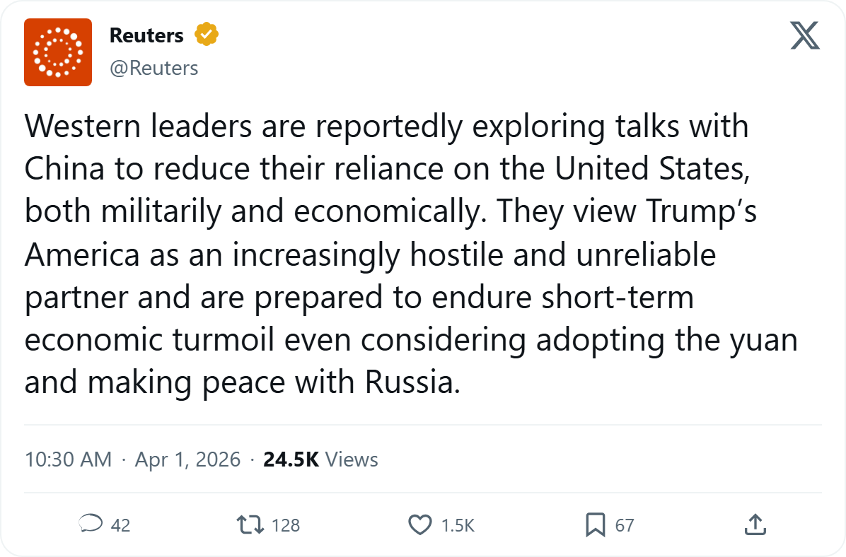 >>62062956Europe is much closer culturally to Russia than McBurgeristan. The US alliance is just a leftover from the post-war rebuild.A single war in Ukraine won't change geography. The fact the UK is signaling a willingness to rejoin the EU economic sphere is by far the most important signal to a shift to the east.And like the Belgian Premier said, the talks about making a deal with Russia has been happening behind closed doors.