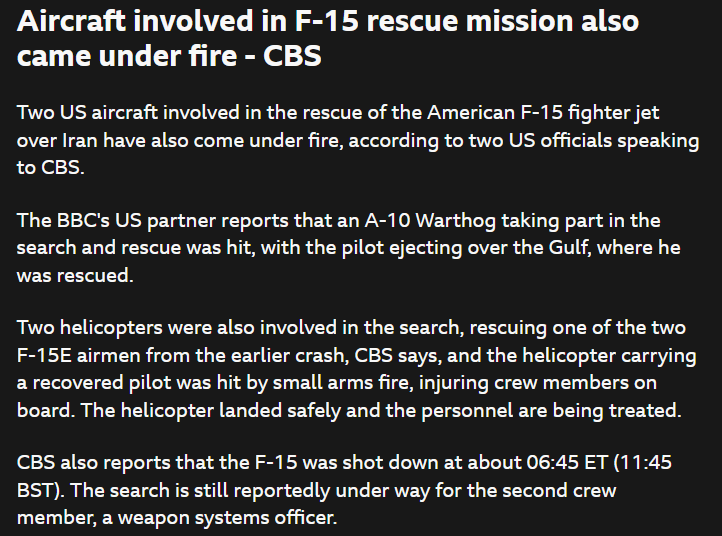 So Iran has shot down an F-35 which is the first time ever and an F-15, as well as multiple destroyed KC-135 Stratotankers by drone/missiles and an E-3 Sentry which also marks a first
