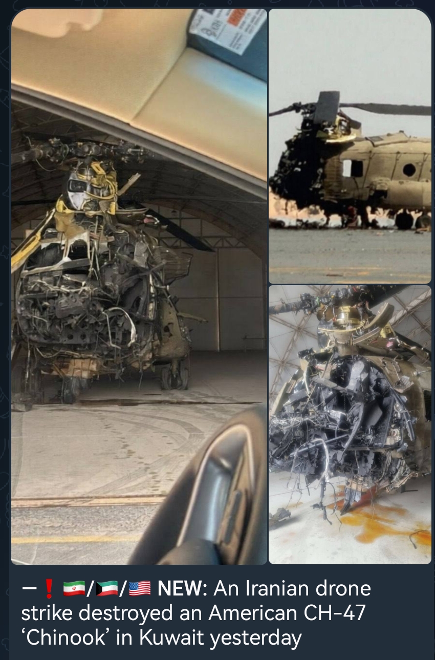 CH-47 destroyed by Iranian drones. Their strikes are pretty precise or this was an FPV, hitting the cockpit is the leasy damage you need to do to junk the rest of the helicopter
