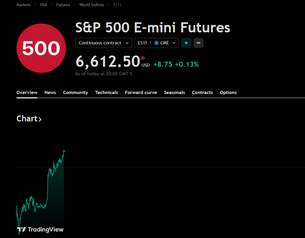>>62080707Where are you seeing futures? I keep getting "CME_EMINIS: ESW00" which isn't showing any changes yet