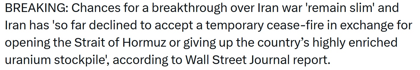 >>62080947Can you link? All I could find is days old articles where Axios is reporting the US is offering a ceasefire if Iran opens the strait