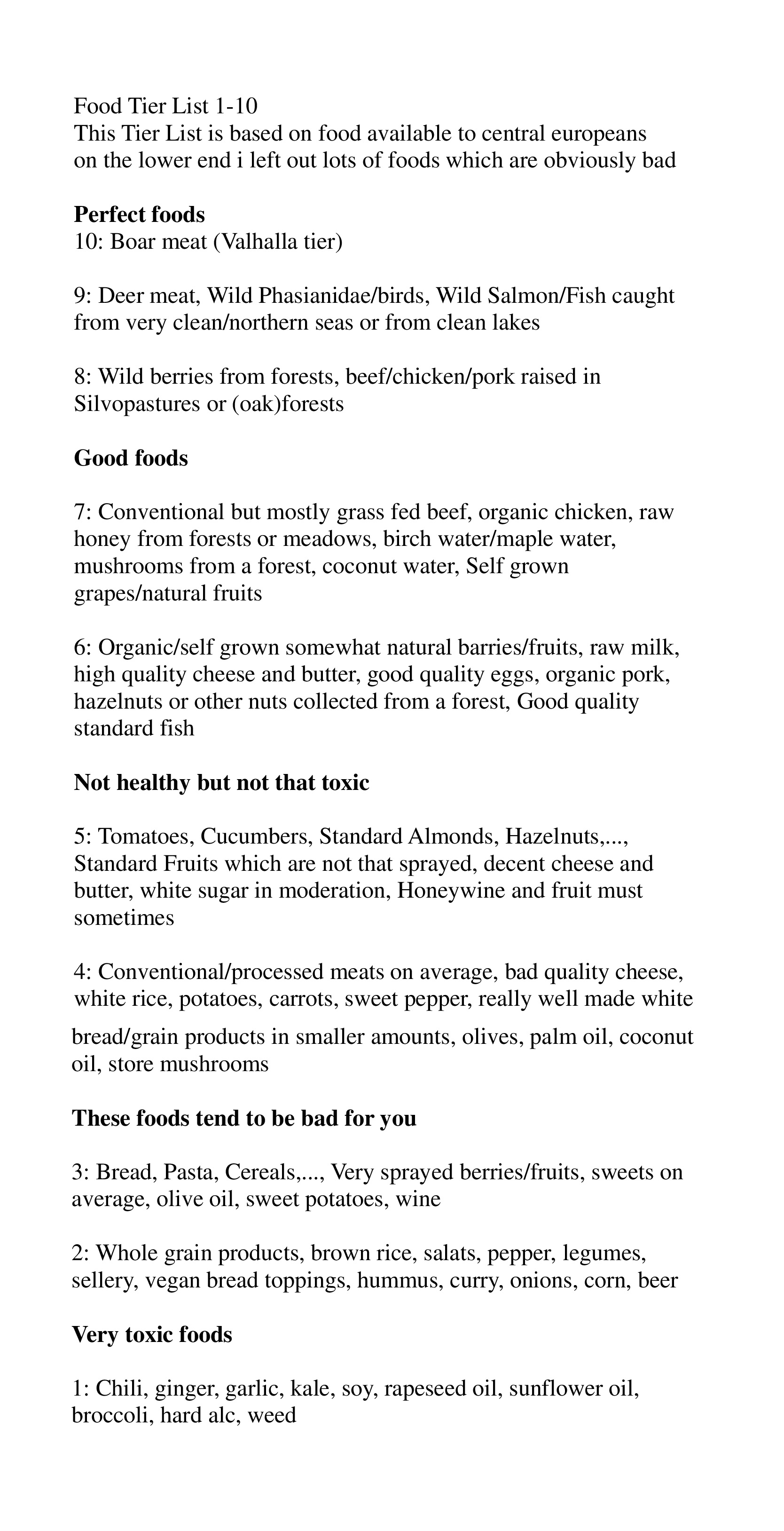 Good kaviar is 9 perfect foods. I need to update my sheet tho a lot of things need corrections.