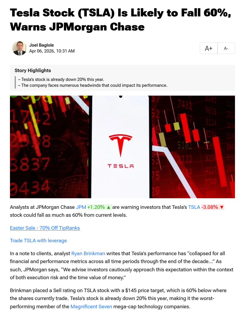 >>62083569The news isn't the news. It's useful for a bank to spread fud if they have puts/shorts on a particular position, to encourage you to sell.But elon is a faggot and I hope he loses everything and sucks dick to survive.