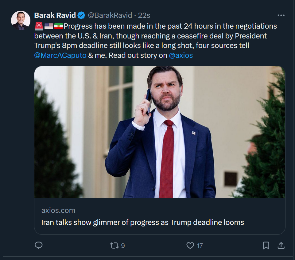 >BREAKING. TALKS ARE SAID TO BE PRODUCTIVE ACCORDING TO PEOPLE CLOSE TO THE SITUATION. SEVERAL KEY POINTS HAVE BEEN AGREED UPON AND THEY ARE HOPEFUL TO HAVE THEM WRAPPED UP FRIDAY EVENING-AXIOS